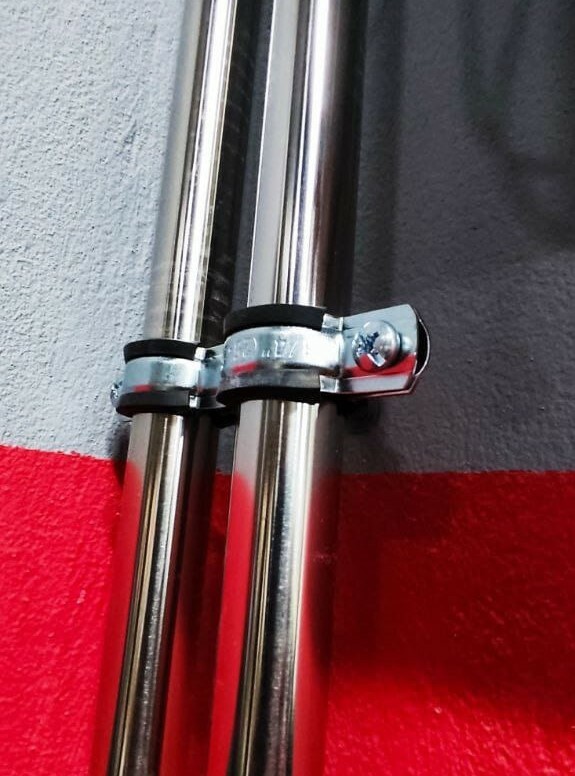 конструкция двойного хомута исключает необходимость затягивания (крепления) винтами каждой трубы с двух сторон, что позволяет уменьшить межосевое расстояние и выполнить прокладку парного трубопровода компактнее до 25%